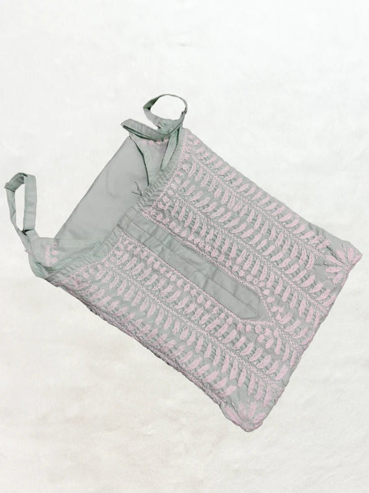 Dusky Rose – Grey & Pink Floral Kurti with Handcrafted White Chikankari