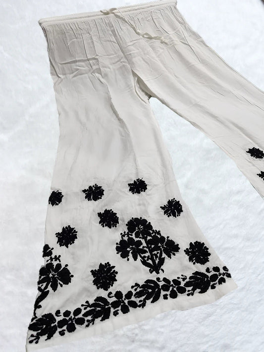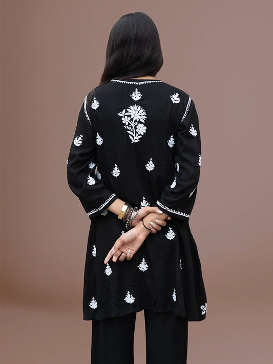 Black Floral Hand Embroidered Rayon Chikankari Plazo Set