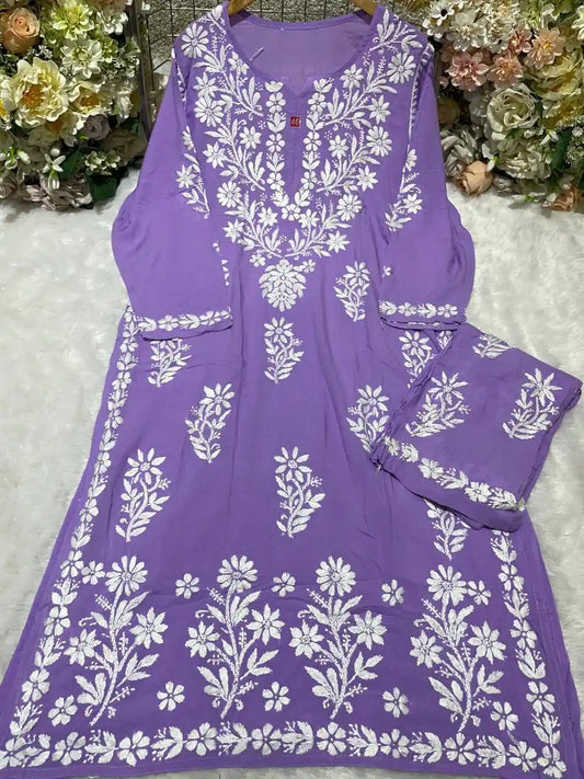 Soft Rayon Chikankari Co-ord Set – Flared Kurti & Embroidered Bottom