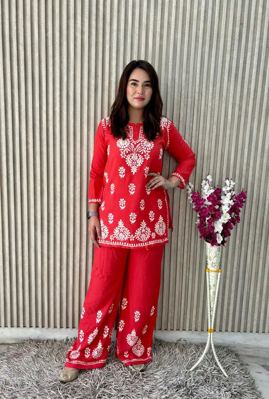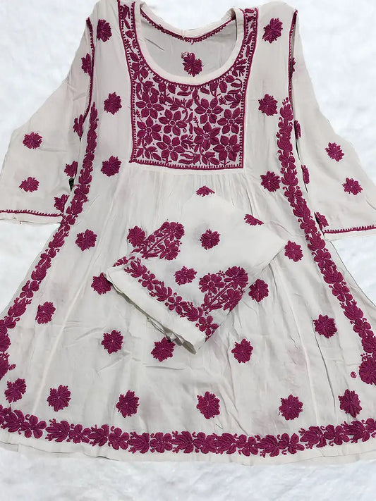 Lucknowi Chikankari Short Kurti for Women – Han...
