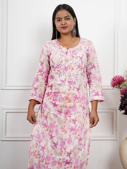 Karina Luxe Designer Printed Chikankari Kurti