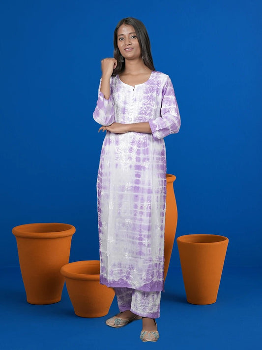 Lavender Splash – Soft Rayon Tie-Dye Co-ord with Chikankari Elegance