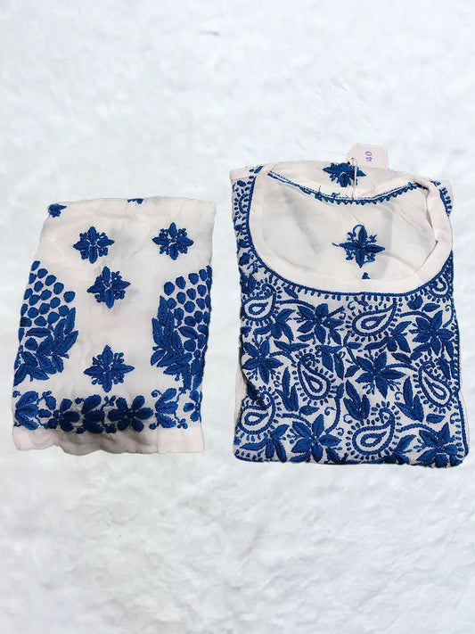 Royal Blue Kurti with White Floral Embroidery