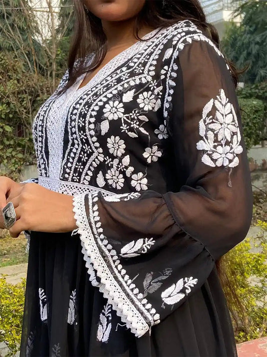 Siyah Sitara – Festive Black Chikankari Georgette Ensemble