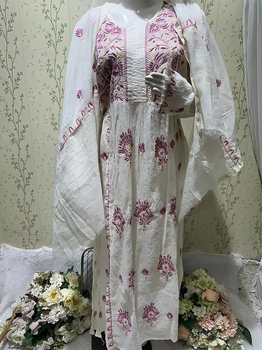 Royal Aura – Semi-Stitched Mul Chanderi Gown with Dupatta