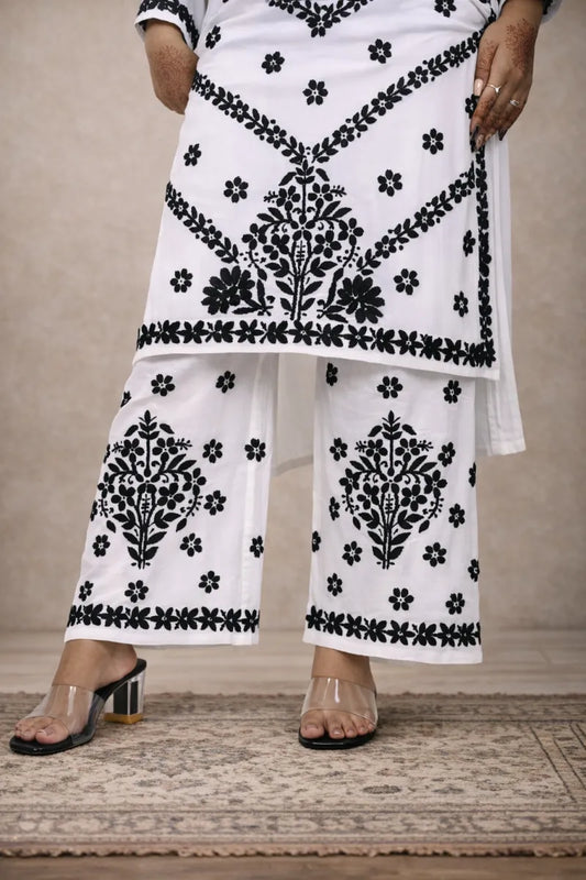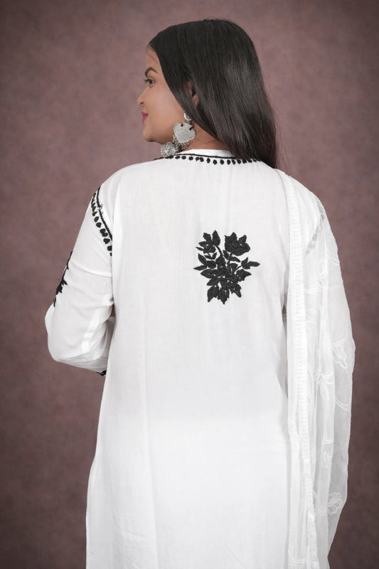 Lucknow White Chikankari Kurti with Black Rose Embroidery