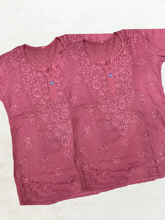 Blush Bloom – Short Dobby Cotton Kurti with Intricate Chikankari Embroidery