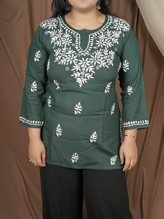 Lucknowi Chikankari Short Kurti for Women – Han...