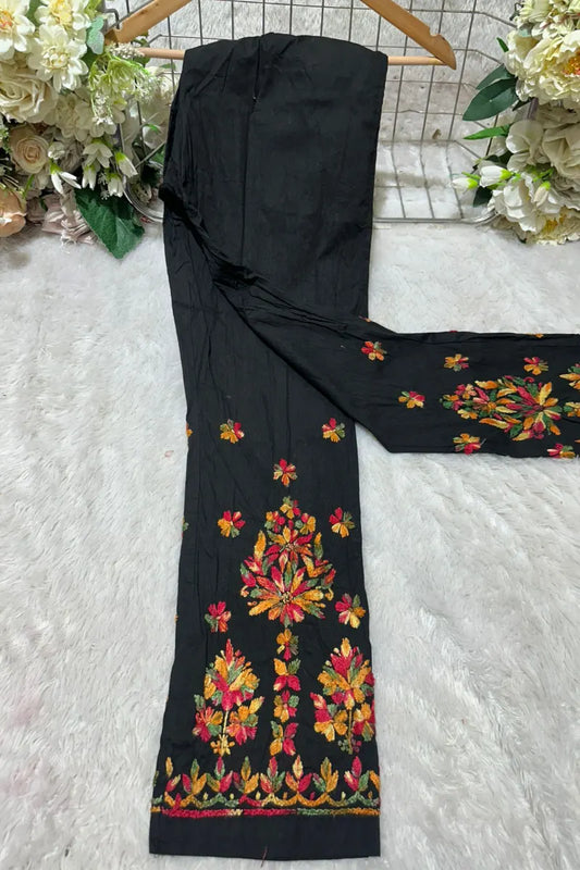 Black Lycra Hand-Embroidered Multicolor Chikankari Pant – Free Size