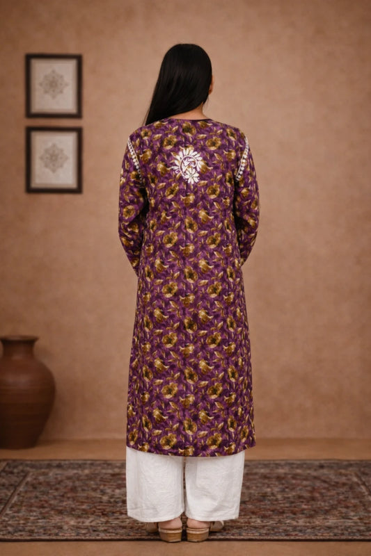Stylish Handmade Purple Rayon Kurti – Traditional Lucknowi Charm