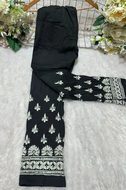 Black Lycra Hand-Embroidered Chikankari Pant – Free Size