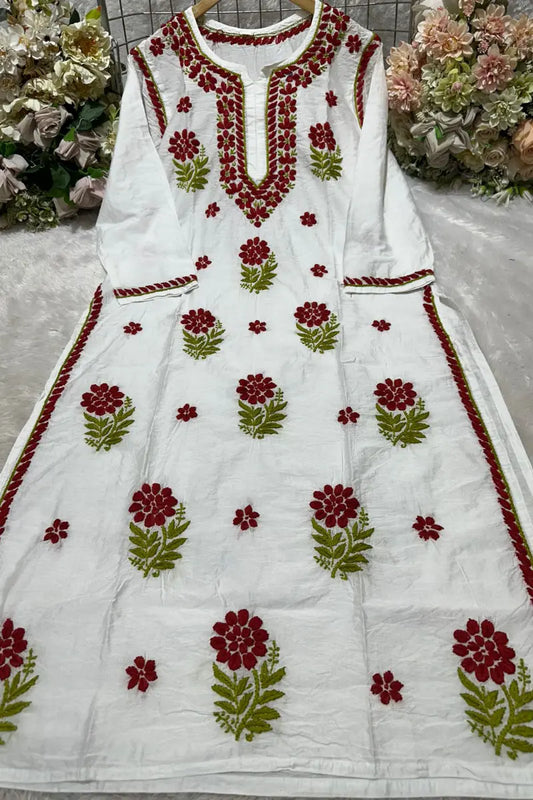 Chandri Gala Booti Chikankari Kurti with Dual-Tone Polyester Thread Work