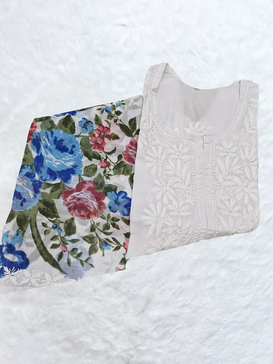 Karina Luxe Designer Printed Chikankari Kurti