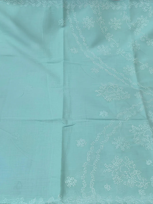 Light Aqua Green Cotton Saree with Delicate Shadow Work