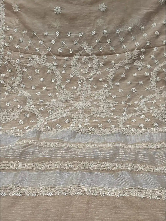 Earth Essence – Beige Taupe Chanderi Chikankari Saree with Subtle Elegance