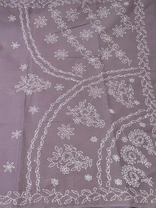 Cool Grey Cotton Saree with White Shadow Embroidery