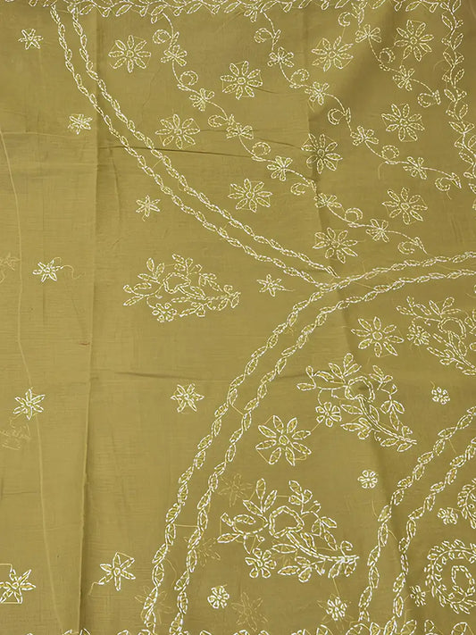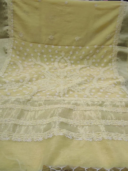 Sunshine Bloom – Yellow Ochre Chanderi Chikankari Saree with Fanda & Bakhiya Embroidery