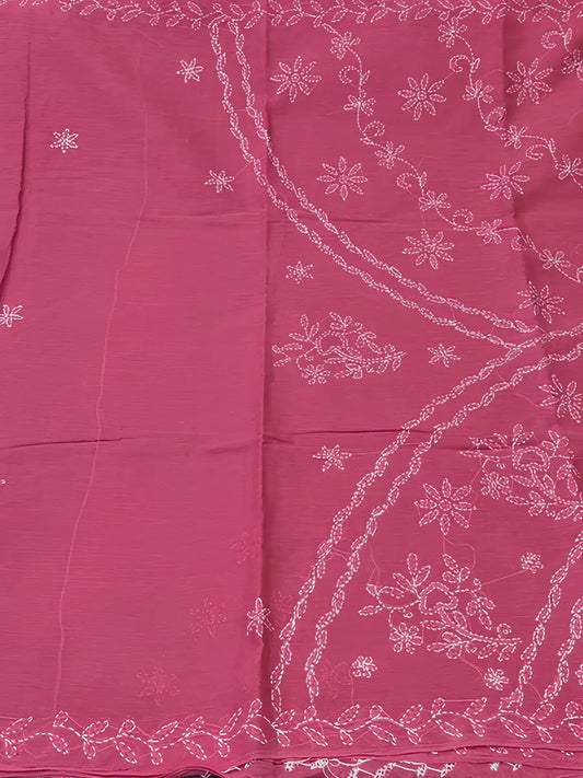 Rani Pink Cotton Saree with All-over Floral Shadow Embroidery