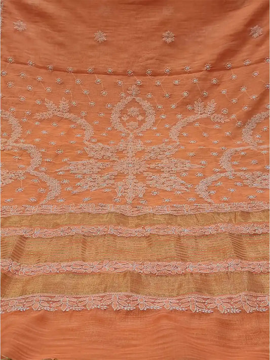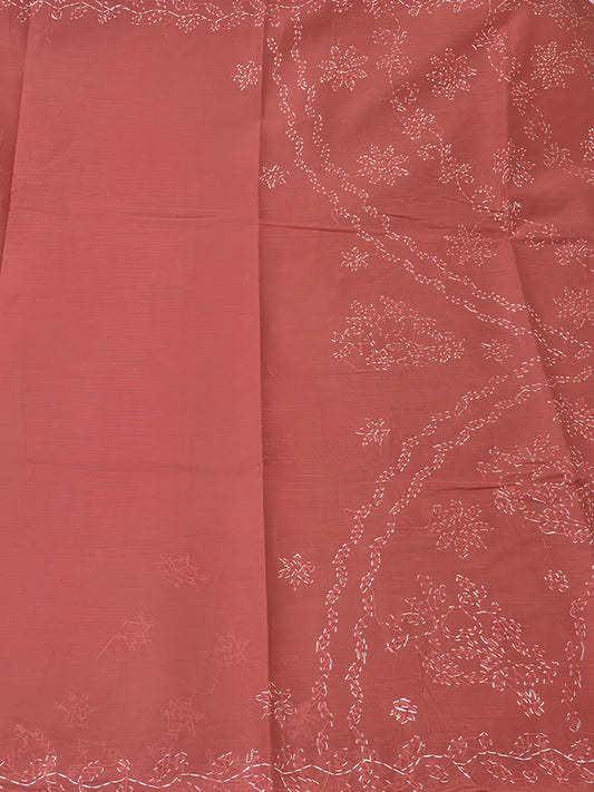 Peach Blush Cotton Saree with Floral Palla Embroidery – 6.5 Meters